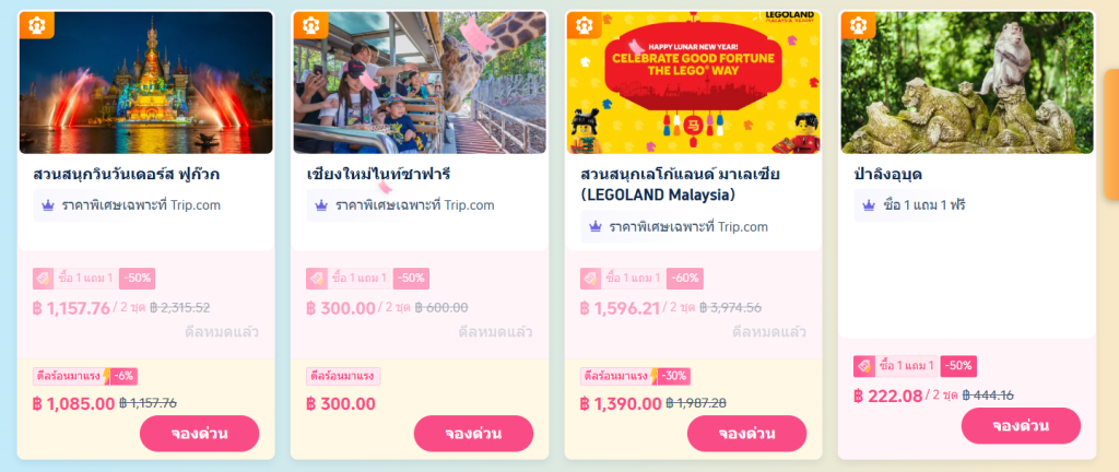 - ดีลกิจกรรมและบัตรเข้าชม: ไม่ว่าจะเป็นบัตรสวนสนุก หรือตั๋วรถไฟในต่างประเทศ ก็มักจะมีโปรโมชั่นพ่วงมาด้วยเสมอ