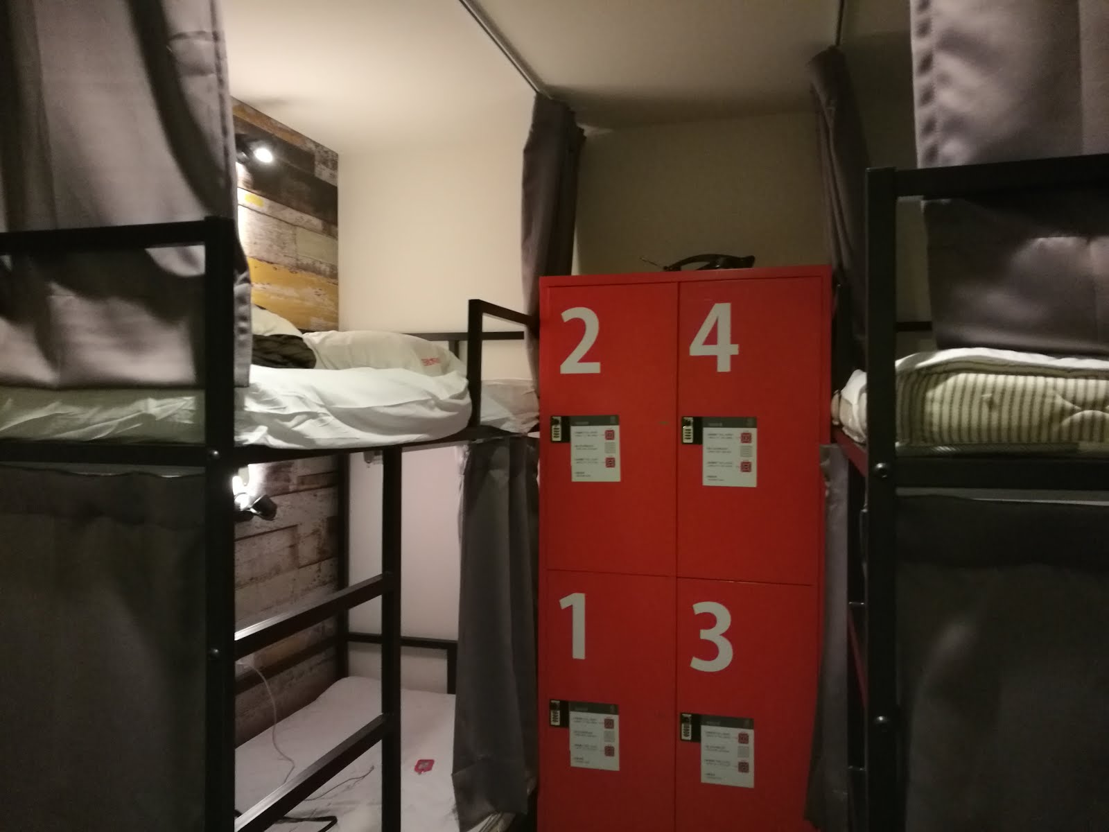 เราพักที่โรงแรมที่สถานี TRA Taichung ค่ะ ชื่อ Change Hotel แต่พักแบบห้องรวมนะ เตียงสองชั้น ได้อยู่ชั้นบนแหละ พักโฮสเทลมาก็เยอะ แต่ที่นี่เซอร์ไพรส์ด้วยการให้หยิบผ้าปูที่นอนปลอกหมอนผ้าห่มจากในล็อกเกอร์มาใส่เอง นี่ก็ต้องปีนขึ้นเตียงปูผ้าปูอย่างทุลักทุเล ตลกดี แต่โดยรวมดีค่ะ สิ่งอำนวยความสะดวกครบ ห้องน้ำห้องอาบน้ำดีมาก แต่ไม่มีผ้าเช็ดตัวนะ ห้องค่อนข้างเงียบ หรือรูมเมทดีด้วยแหละ