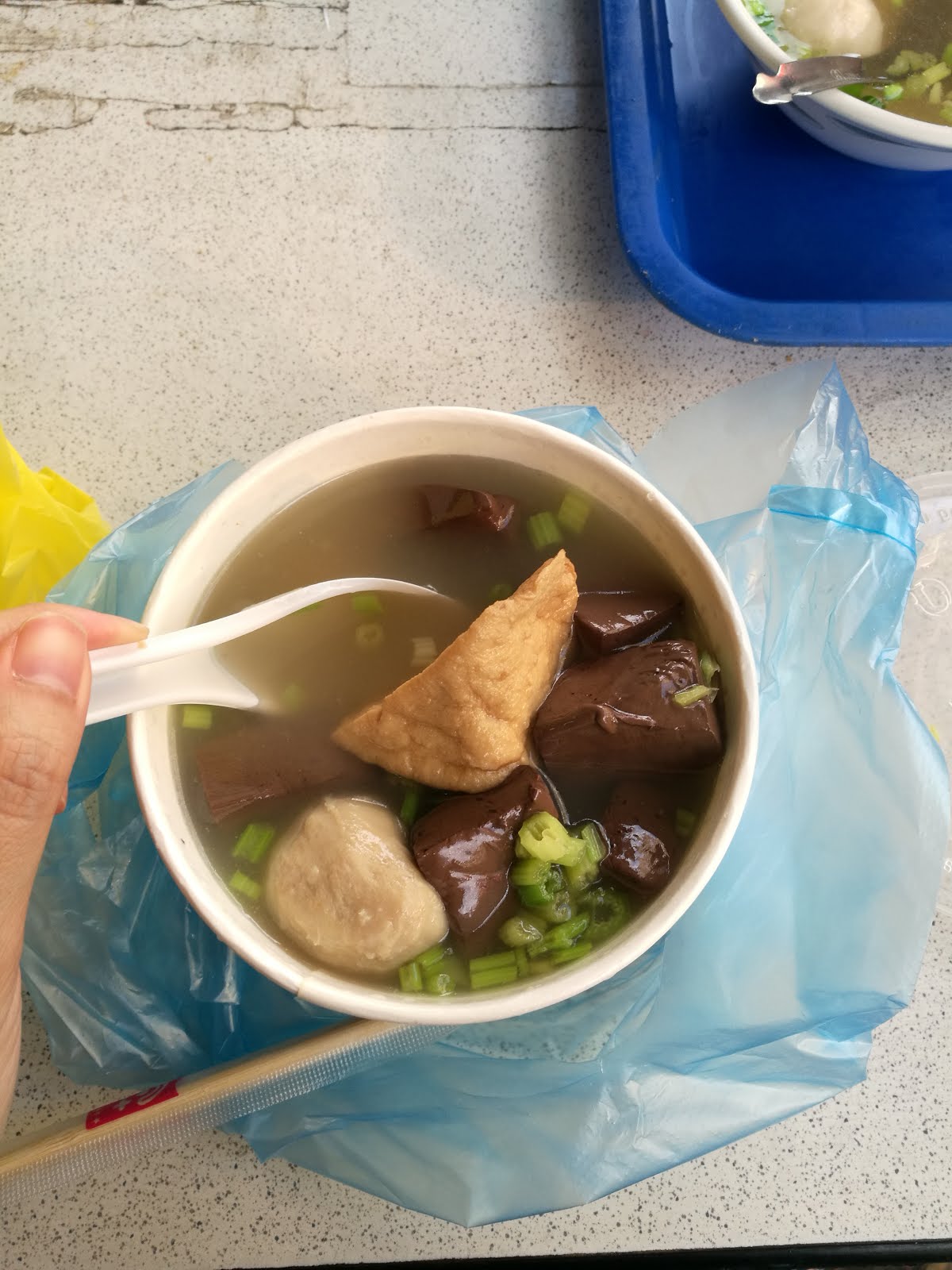 >>> ที่นี่ไม่มีถุงพลาสติกให้นะคะ นี่โกยขนมใส่กระเป๋าแทบไม่ทัน อยากได้ถุงขอซื้อเอาค่ะ ถ้าเป็นอาหารอุ่นร้อนก็จะมาแบบนี้ เสียบช้อนมาพร้อม ไม่หล่นด้วยนะ
