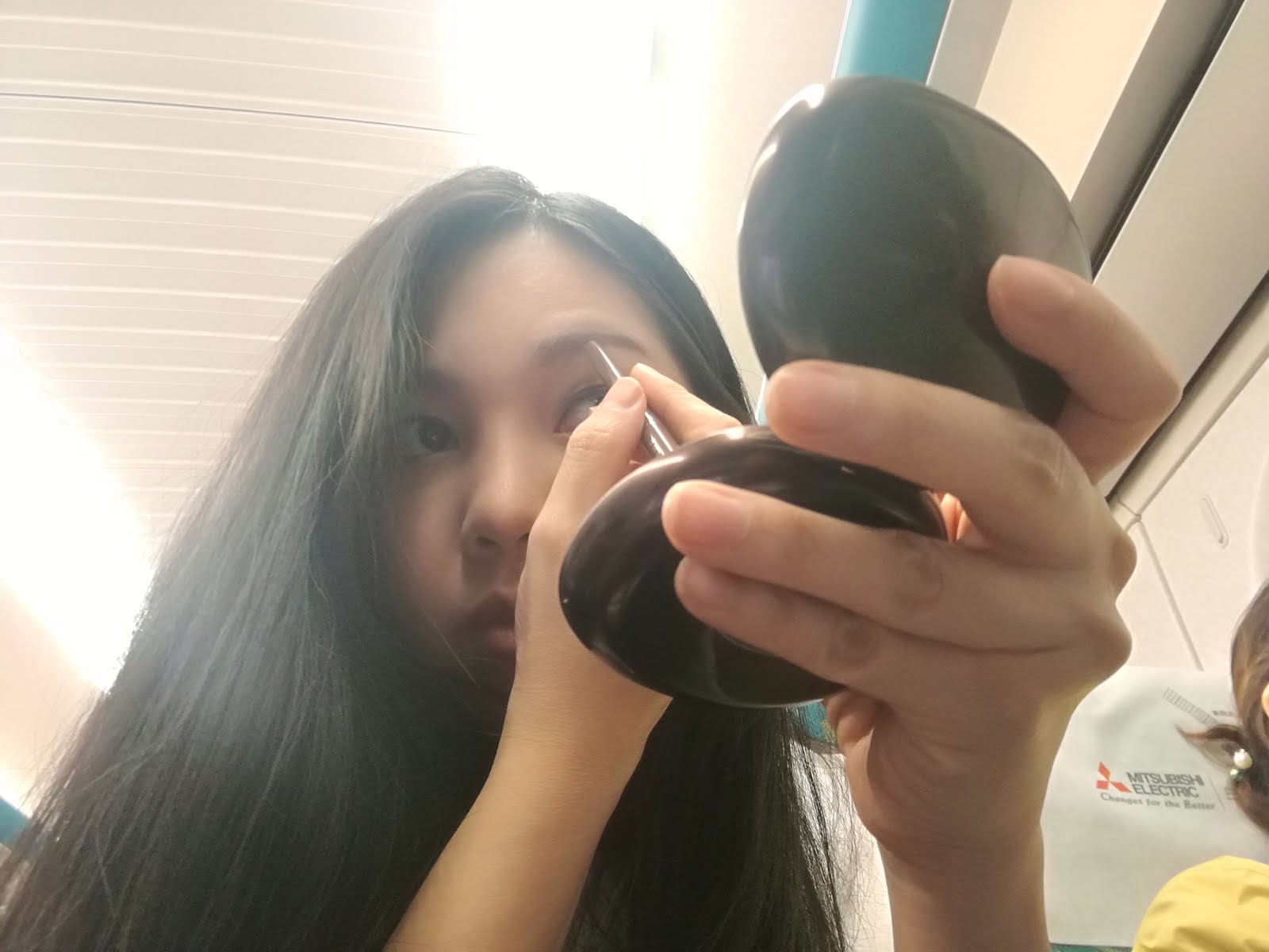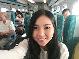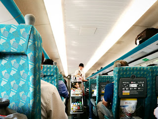 บนรถไฟแบบไฮสปีดของนาง ชอบมากเลย นั่งสบาย มีโต๊ะด้วย ทุกคนจะมีกิจกรรมของตัวเอง นั่งเล่นมือถือ หลับ อ่านหนังสือพิมพ์ คุยกัน หรือแม้แต่กินข้าวก็ได้ แถมสะอาดไม่มีขยะด้วยนะ ส่วนเราก็นั่งแต่งหน้าบนรถไฟ อิอิ มีห้องน้ำ มีคนเข็นรถเข็นขายของด้วยนะ คือดีงามมากกกก