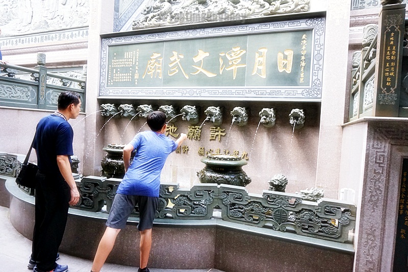 จากนั้นก็โดดขึ้นรถเลยค่ะ ที่แรกที่ไปคือ วัดกวนอู สวยงามอลังการตามสไตล์วัดจีนค่ะ เทพกวนอูถือเป็นเทพแห่งความซื่อสัตย์ โชคลาภ บารมี ขอพรได้เลยค่ะ เข้าไปด้านในก็มีน้ำพุแห่งโชคลาภ มั้ง เห็นเค้าโยนเหรียญขอพรกัน มองขึ้นไปด้านบนจะเห็นเหมือนกำแพงสีเงินยิ่งใหญ่ตระกาลตา ประกอบกับท้องฟ้าสวยๆ อากาศดีๆ นึกว่าอยู่บนสวรรค์เลย