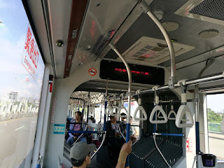 พอนั่งรถเมล์เข้ามาในเมืองหน่อยๆ เปลี่ยนสายไปนั่งรถเมล์ฟรีค่ะ ดีงามไปอีก ที่ไถจงมีรถเมล์ฟรี มีเลนรถเมล์ด้วยนะ เป็นเลนของรถเมล์จริงๆ เพราะรถยนต์อื่นๆไม่วิ่งเข้ามาเลย เค้าถึงวิ่งได้ตรงเวลาเป๊ะๆ ไง ดีงามจริงๆ